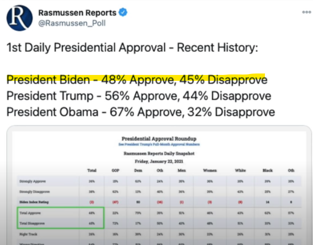 Joe has gotten the lowest poll on the first presidential poll compared to previous presidents.