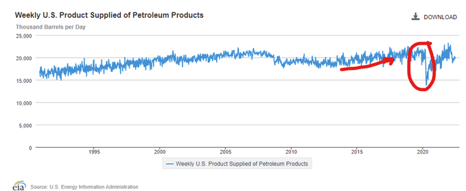 First you’ll see the steady increase that Trump had enabled. Why did it drop, Biden EO’s restricting O&G.